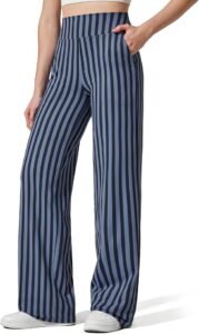 Performance and comfort remain central to the design. The soft, moisture-wicking fabric enhances comfort during physical activity by drawing sweat away from the body and promoting quick drying. The high waist offers gentle support without restricting movement, while the wide leg ensures freedom and ease during yoga, stretching, or general movement. These pants are particularly well-suited for activities such as yoga, Pilates, casual walks, or even light office wear. Their flexibility and comfort make them ideal for long hours of wear, whether at home, in the office, or on the go.